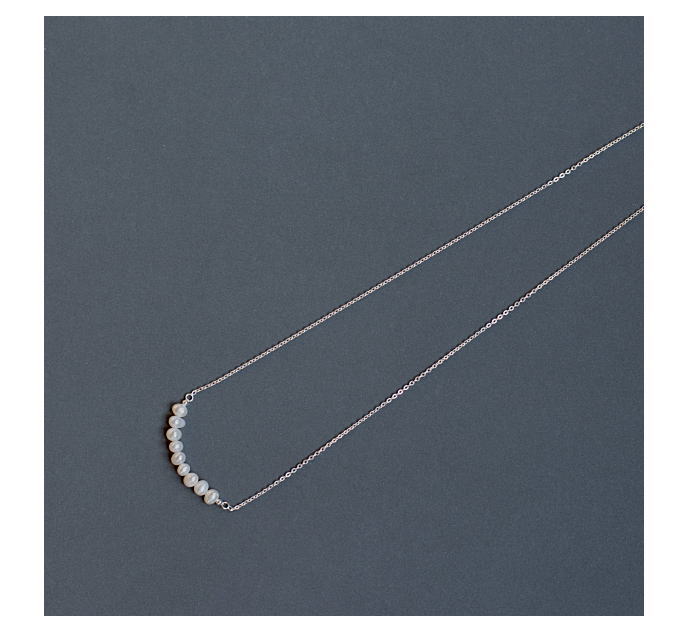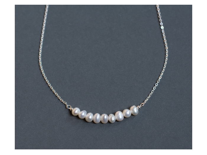 淡水パールとシルバーチェーンのネックレス。