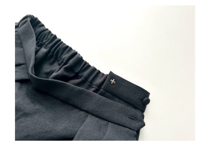 るので、お洗濯が多くなる季節にもおすすめの生地です。ウエストのタックやクル