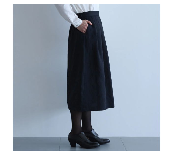ートに仕上げました。裾に向けて広がりすぎないシルエットは、いろいろなコーデ
