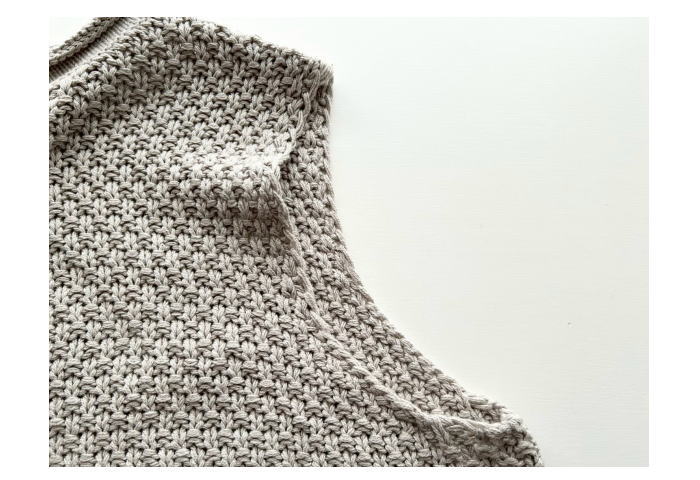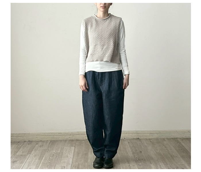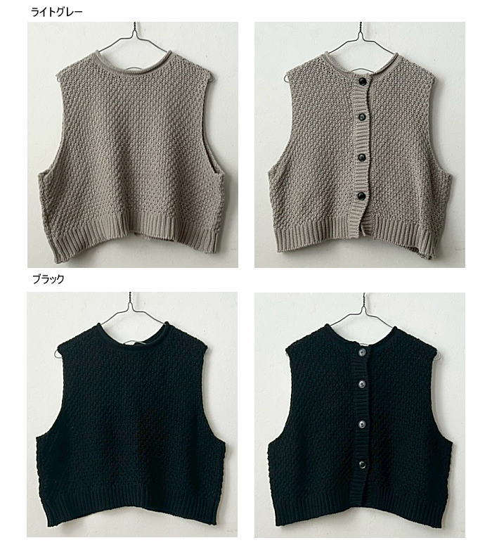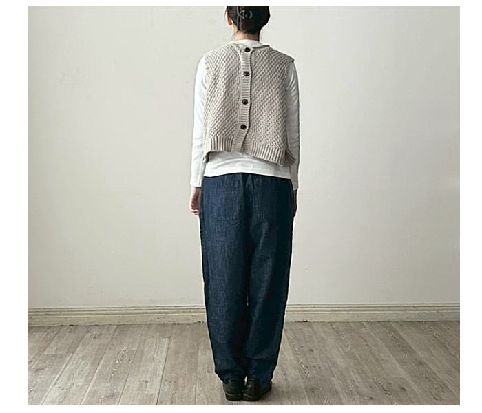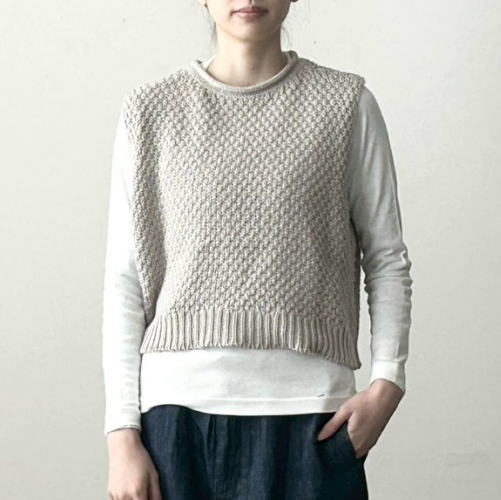 さらりとした質感のコットンニットベストです。アームホールが大きく開いた