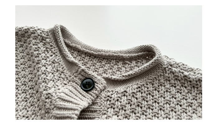 バーでもフロントにボタンを持ってきてカーディガン風着ることもできます。