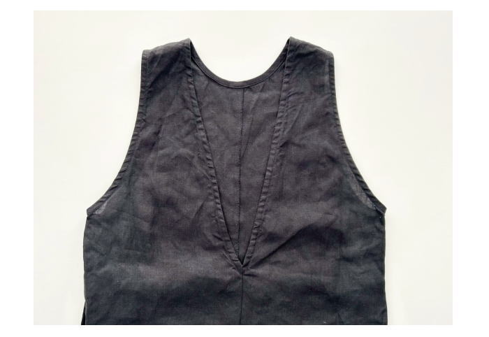 フロントはクルーネック、バックスタイルは深めのV開きで抜け感のあるデザイン。
