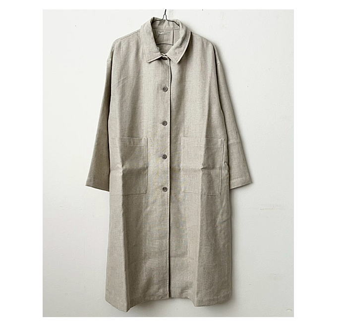 ウールリネン素材を使用した、シンプルでなステンカラーコートです。ゆっ