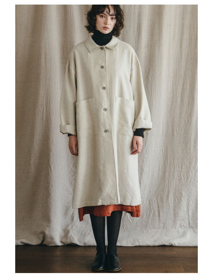 たりとした着心地と美しいAラインシルエットが特徴。ウールとリネンの混