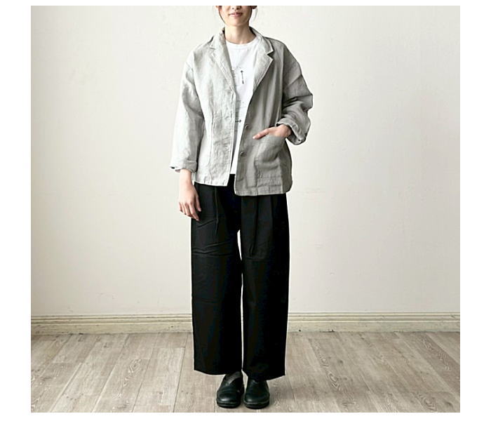 シンプルなデザインのテーラードジャケット。ほどよく厚みのあるリネン