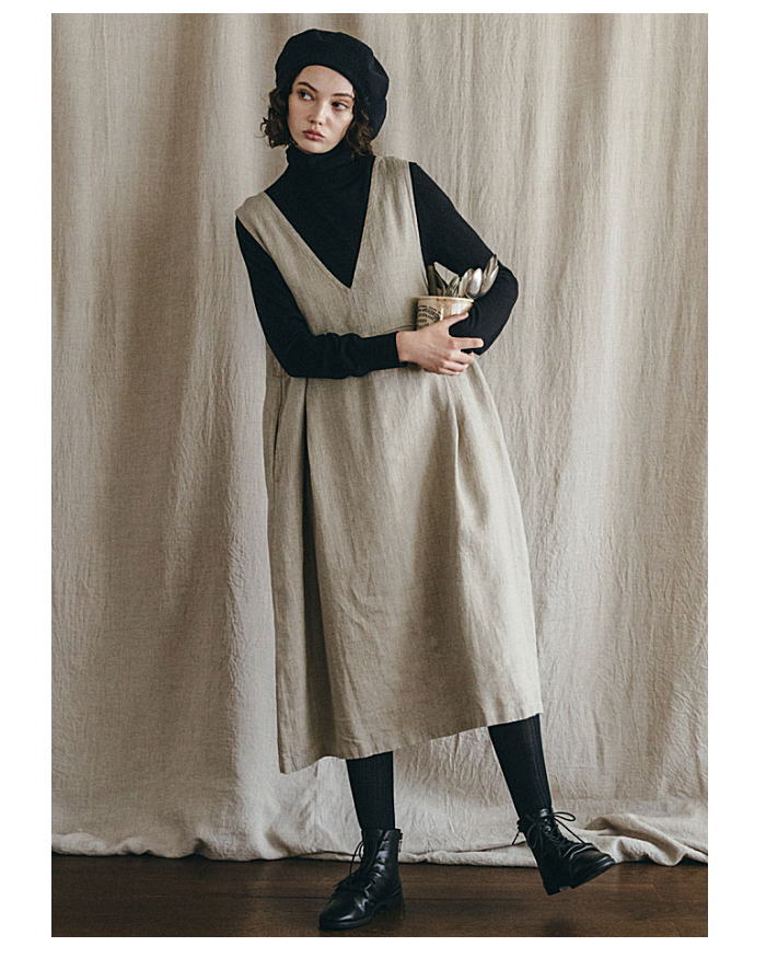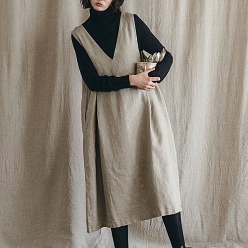 fog linen work(フォグリネンワーク)ヴェルニスVネックワンピース