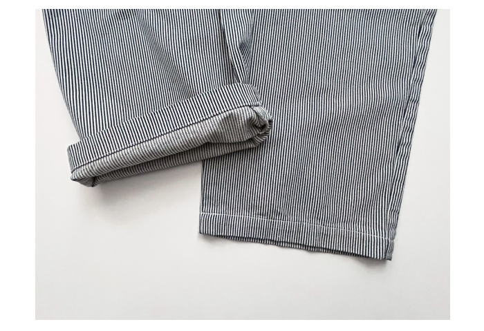 程よい厚みのヒッコリー生地を使用したデニムパンツです。経糸と緯糸の両方
