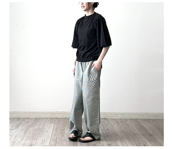 | 実寸サイズ | F:股下68股上40ウエスト35~45ヒップ58ワタリ36裾幅25(cm)(平置き採寸) | |||||