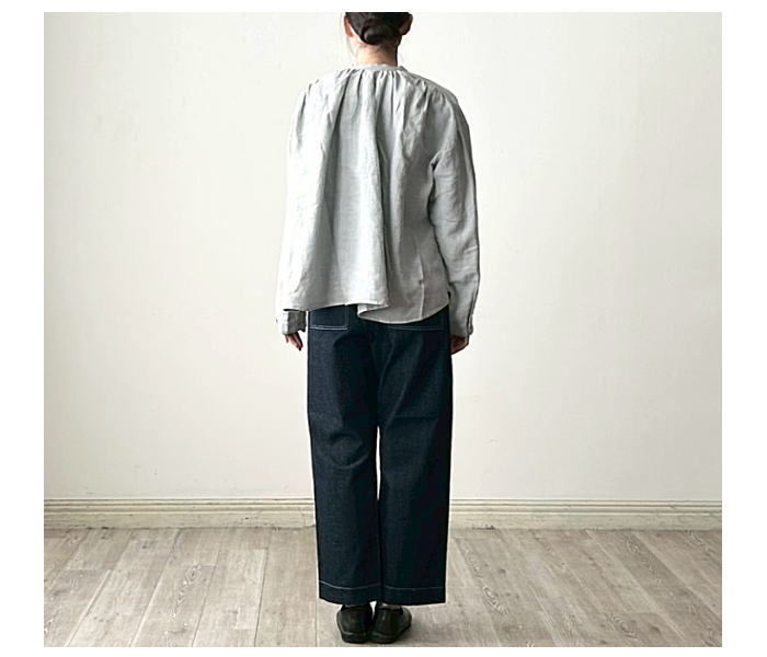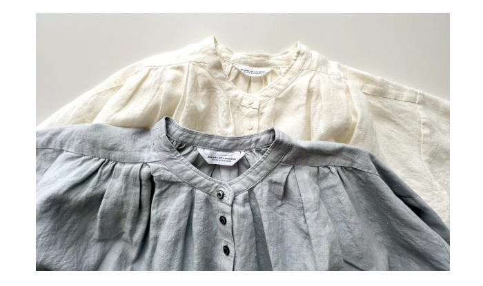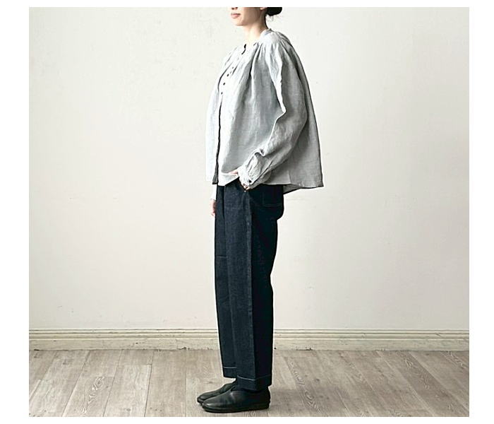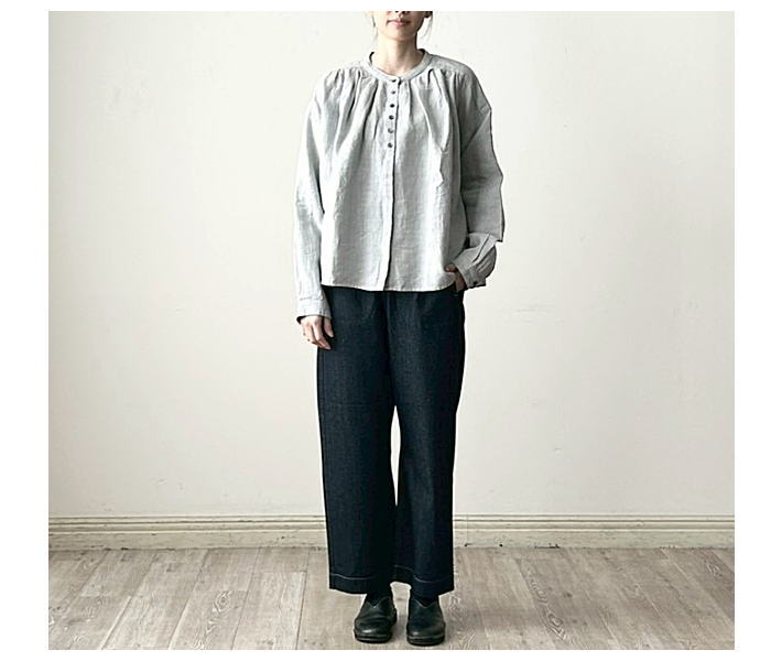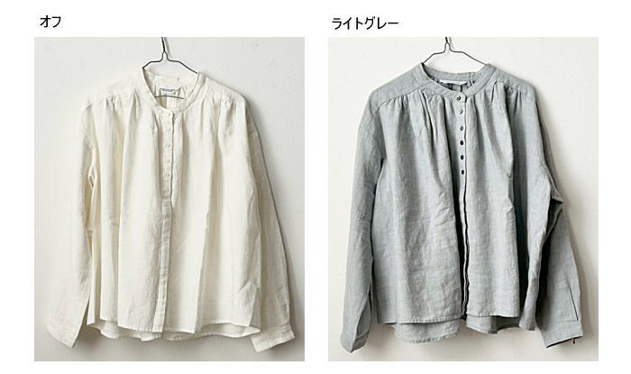 Hands of creation(ハンズオブクリエイション)リネン桐七炊きランダムタックバンドカラーシャツブラウス