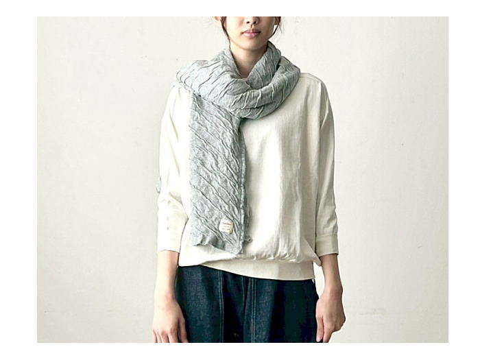 アルモニ定番のもこもこ接結より大判ストールが届きました。ナチュラルなシワ感