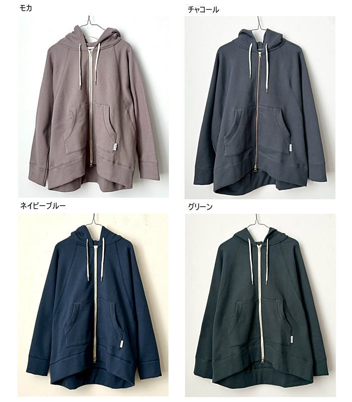 harmonie(アルモニ)コーマ裏起毛・裏毛 ドルマンZIP UPパーカー