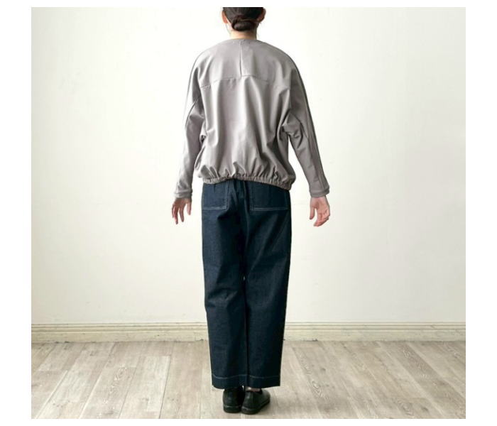裾にゴムが施されており、全体的に丸みを帯びたコクーンシルエットになるためバ
