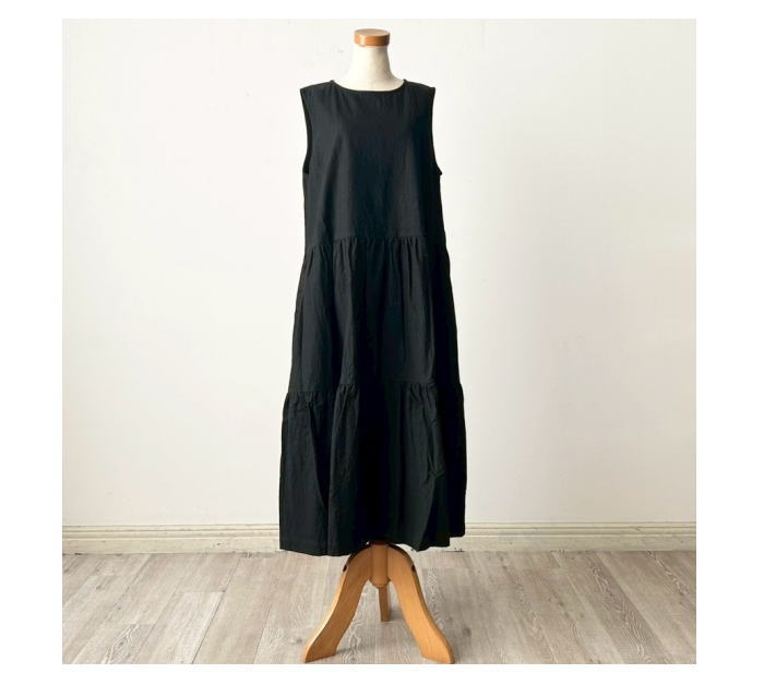 Linenya(リネンヤ)ティアードワンピース 厚地 リネンコットン