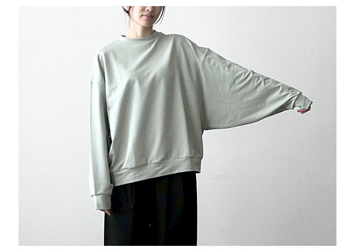 ントレーナー。方から腕にかけてゆったりとしたラインになっており、体のライ