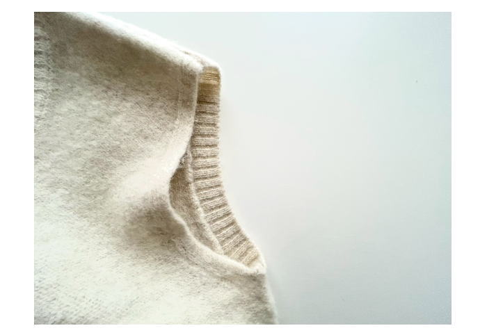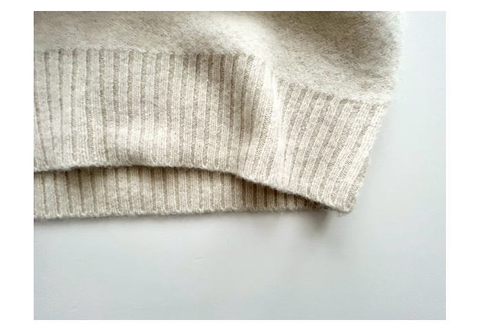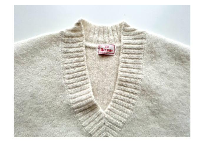 少し深めのVネックが顔周りをスッキリとみせてくれます。軽くて暖かい一枚