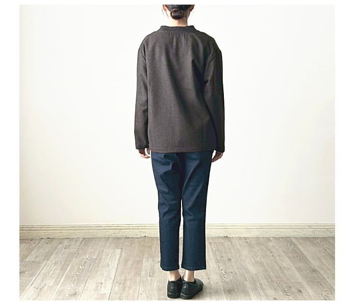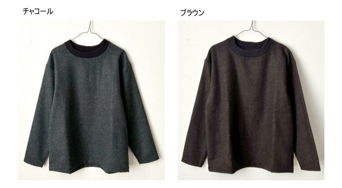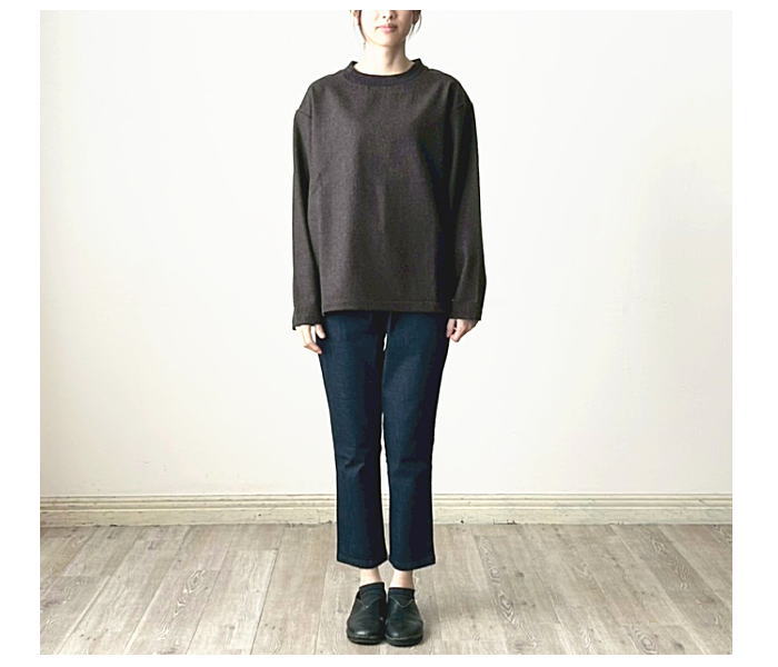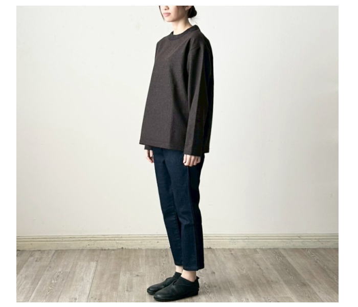 同色系カラーのリブを使用しています。一枚着はもちろん、重ね着にも向いて
