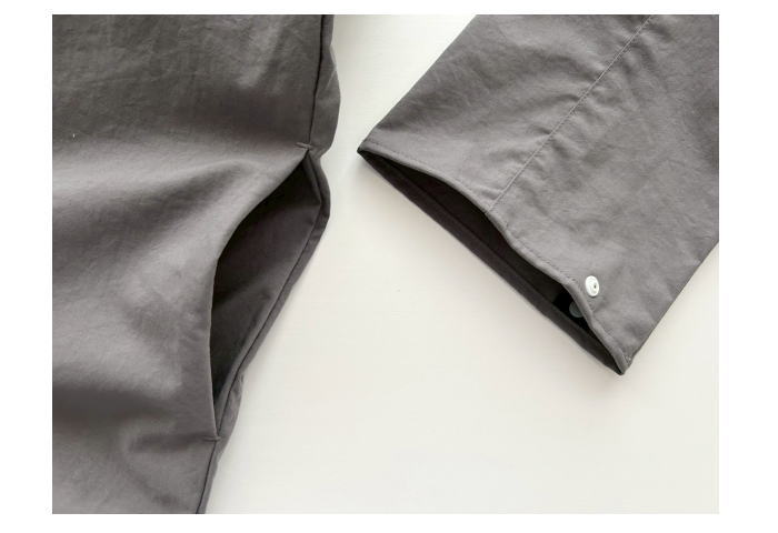 袖にもスナップボタンが使われているため袖口を細くすることができます。
