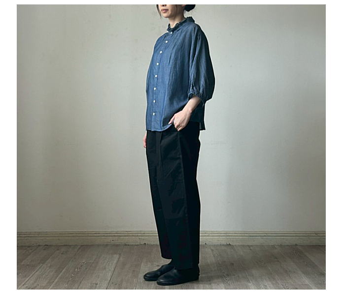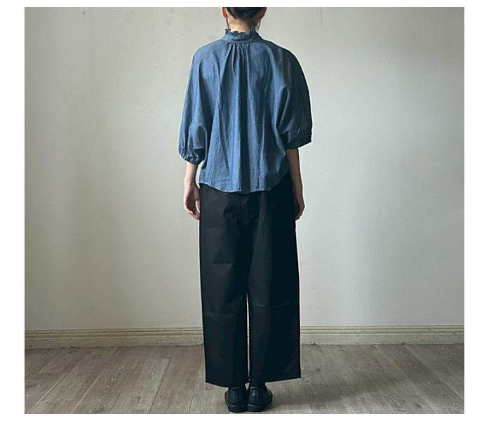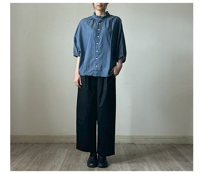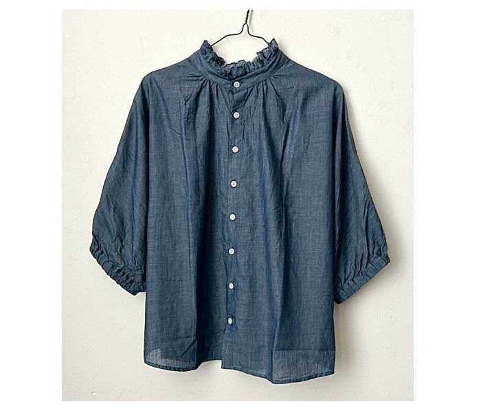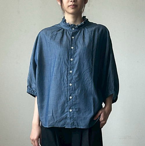 NARU(ナル)2.25ozデニム ターキーシャツ フリルネック