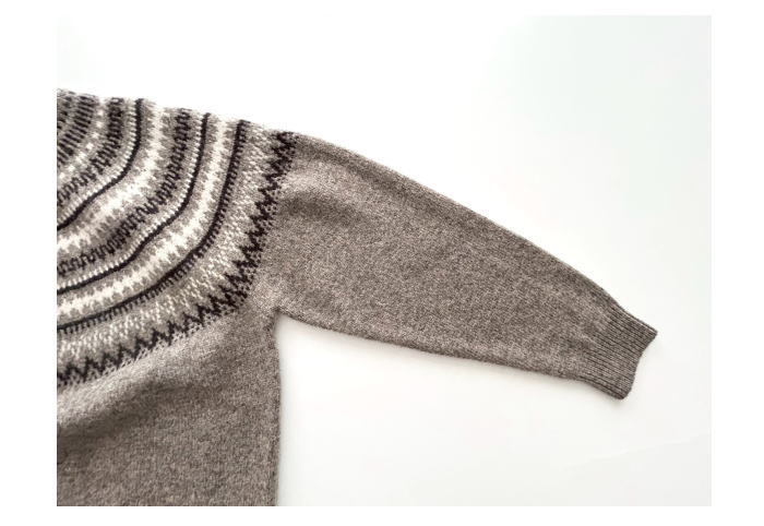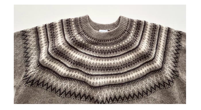 シェットランドウールをベースにネップ入りのメランジジャガードが入った