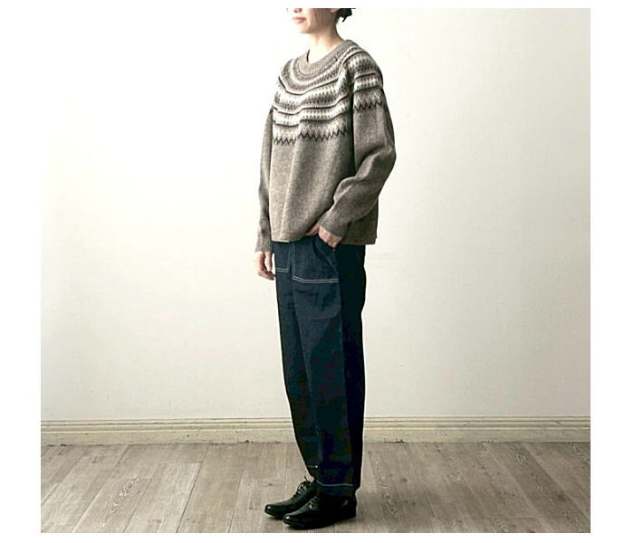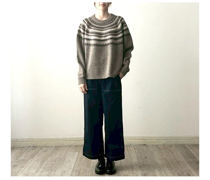一枚。ジャガード部分がメランジなのでより馴染んだ柄になってます。