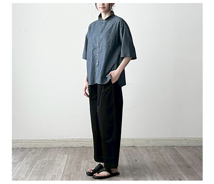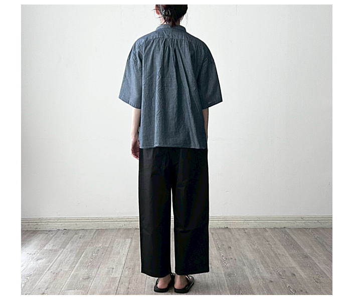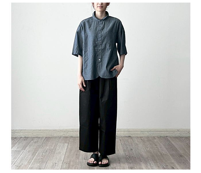 prit(プリット) インディゴシアーデニム 5分袖レギュラーカラーシャツ