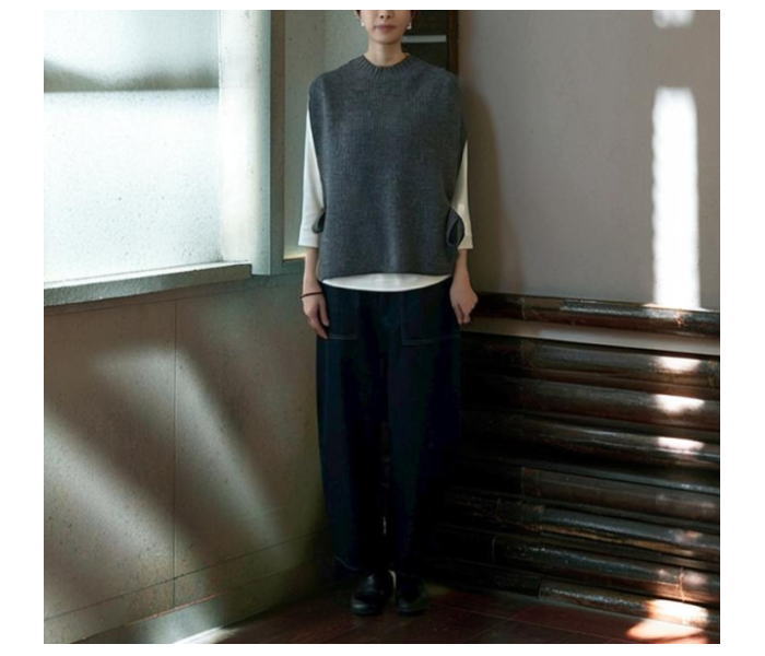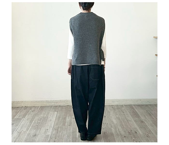 ラムウールを使用した、ざっくりとした編地のやわらかベストです。身頃と