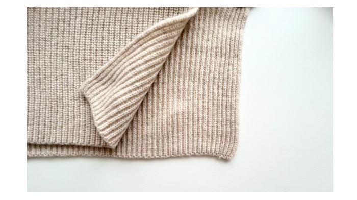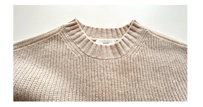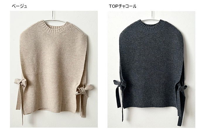 異なるネックに沿う編み地と、サイドリボンのデザインがポイントになりま