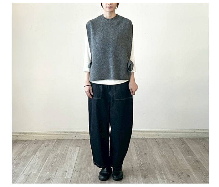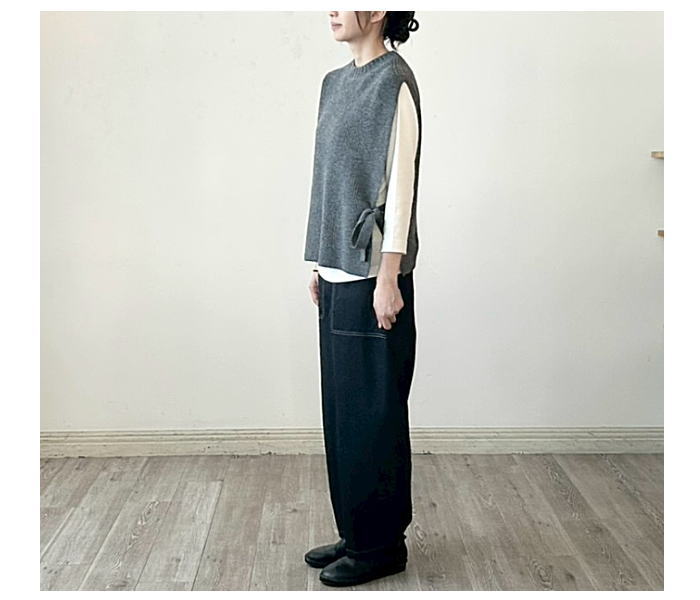 prit(プリット)2/15ラムウール5G天竺編み サイドリボンベスト