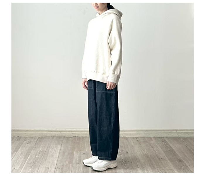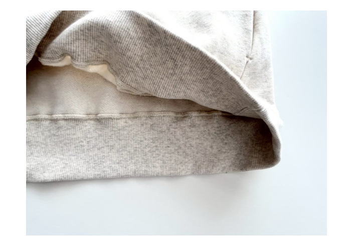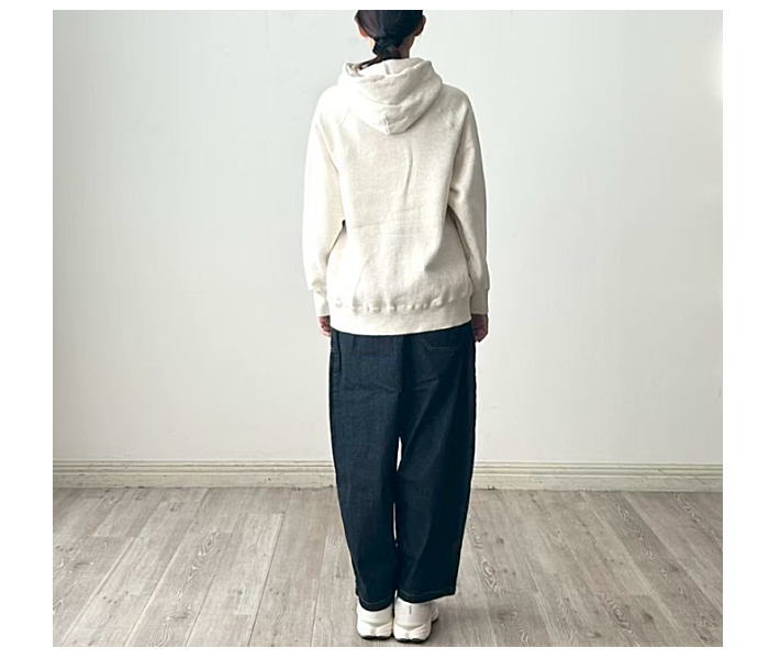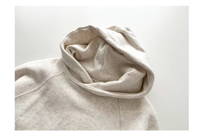 柔らかな肌触りでふんわりとした着心地のよさ、裏毛起毛生地を使用したプルパーカー
