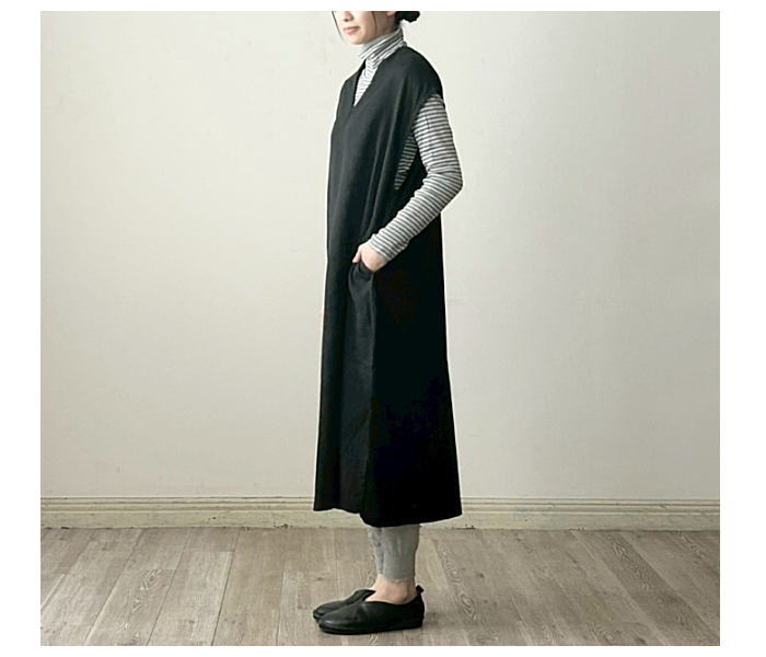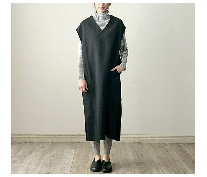 prit(プリット)40/2度詰天竺×コットンツイル二重織 切替Vネックオーバーワンピース