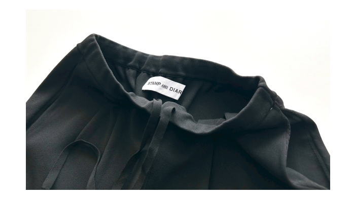 スタンプアンドダイアリーのタックパンツ。ウエストの両サイドに入れたタ