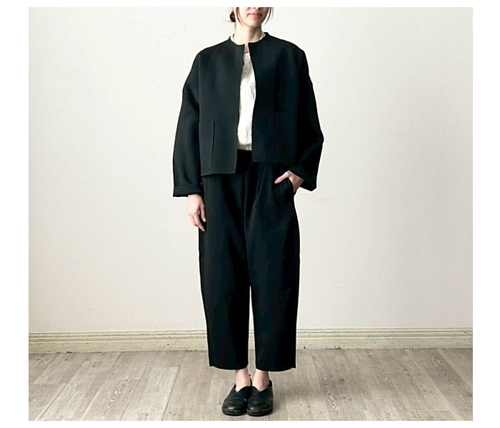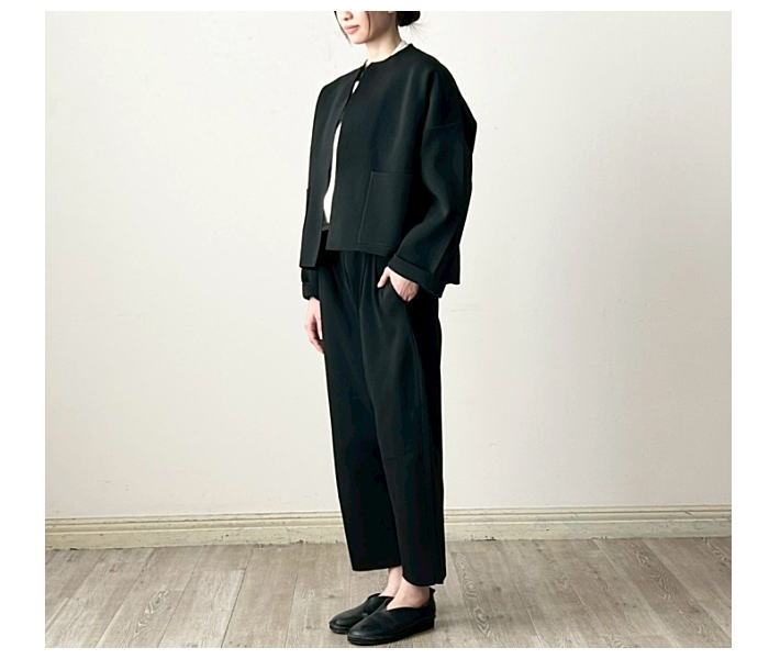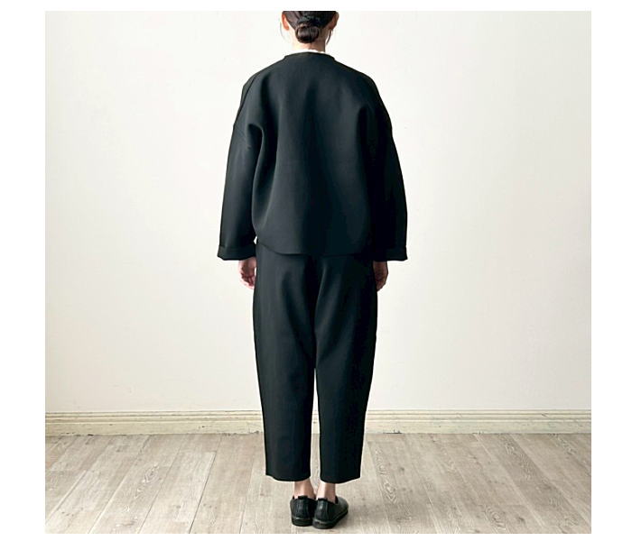 エステル糸をミラノリブ編みに仕立てた生地は、軽やかでとても馴染みやす