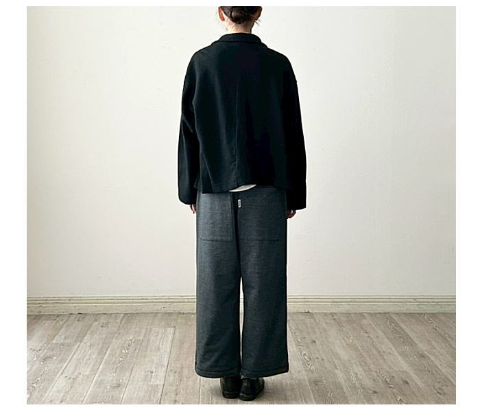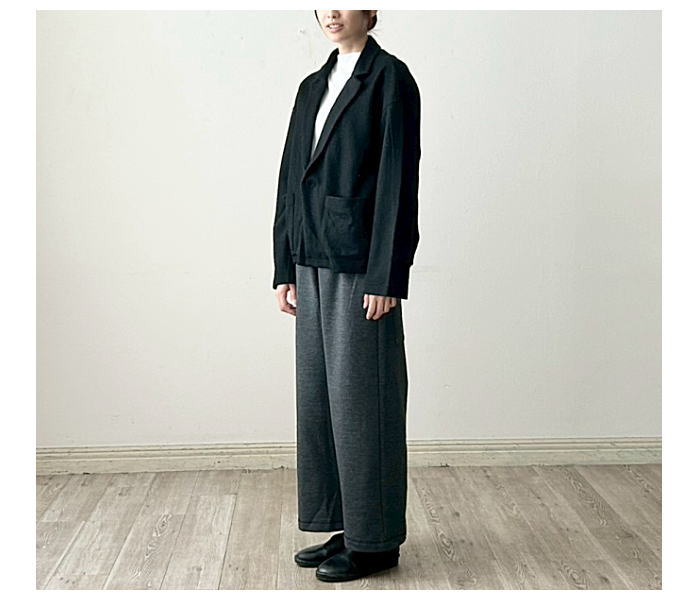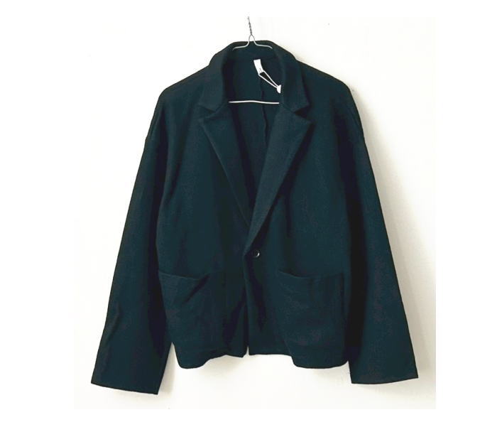 中肉感のあるウールを強縮絨したカーディガンのようなジャケットです。