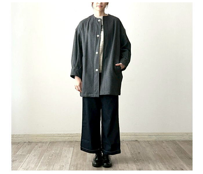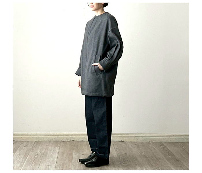 UNIVERSAL TISSU(ユニヴァーサルティシュ)ウール ノーカラー コート