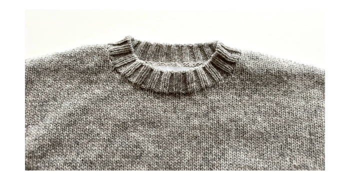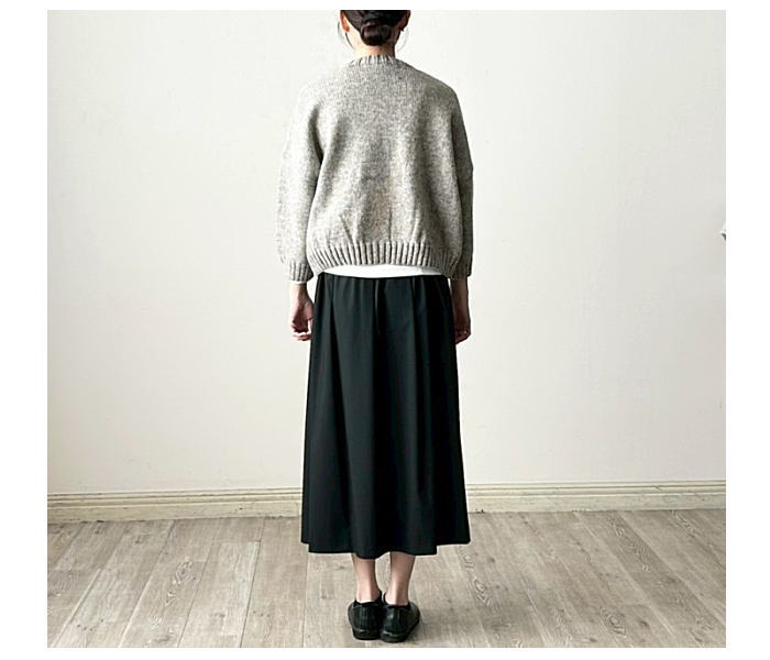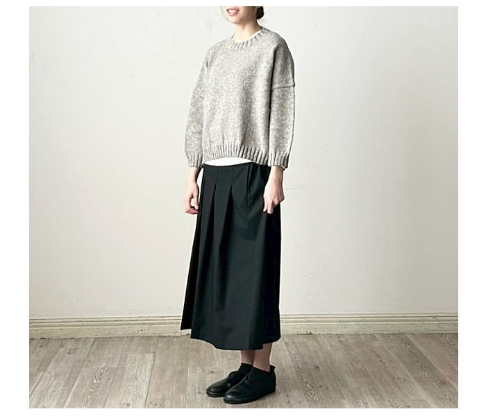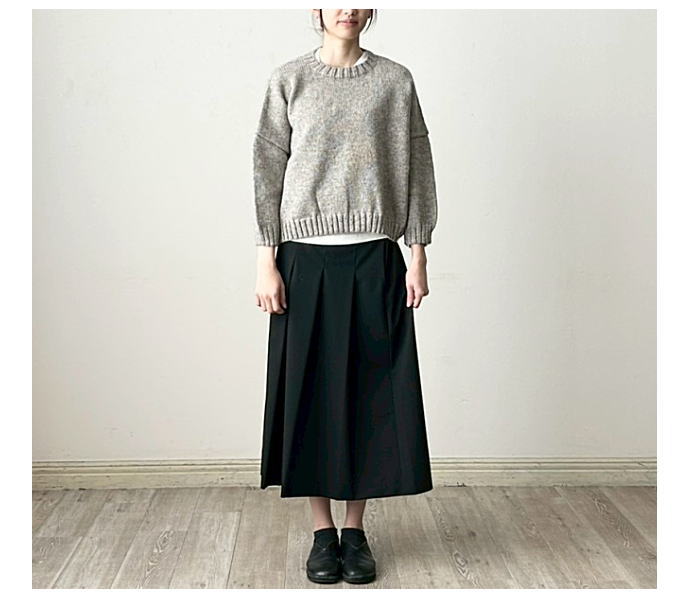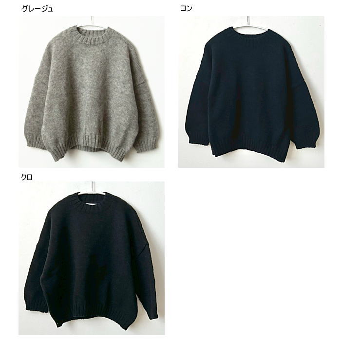 定番人気のペルーニットのクループルオーバーです。やや短めの丈感がボトム