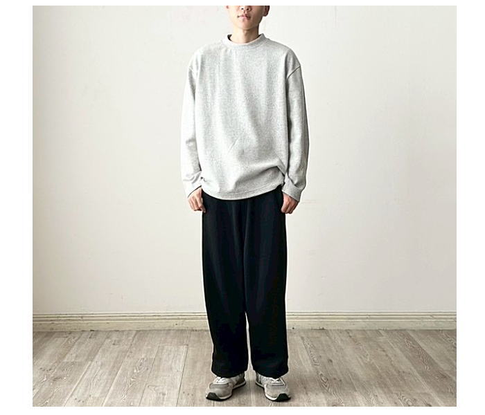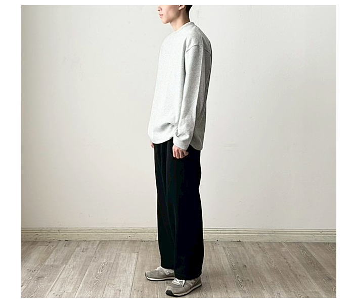 品のある表情と快適な穿き心地を兼ね備えたワイドスウェットパンツです。