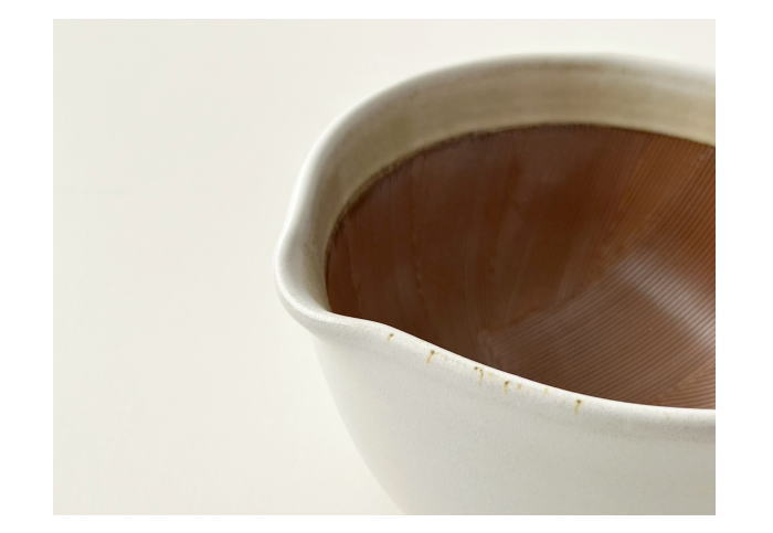 シンプルな白マットのすり鉢は、そのまま食卓にだせるデザインもまた、魅力のひとつです。