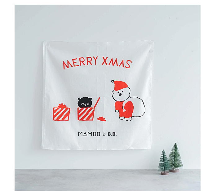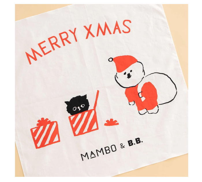 MAMBO と B.B. が一緒に登場する、クリスマス仕様のハンカチができました。真っ赤な