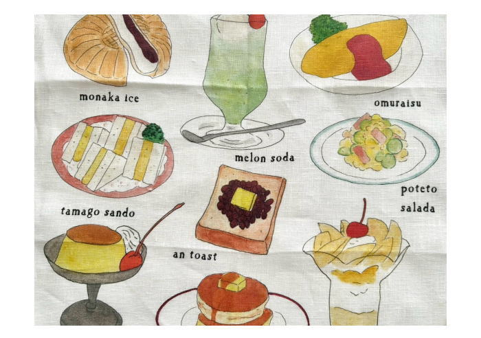 ザベルさんが愛する、日本のレトロなスイーツや食事が描かれた一枚です。