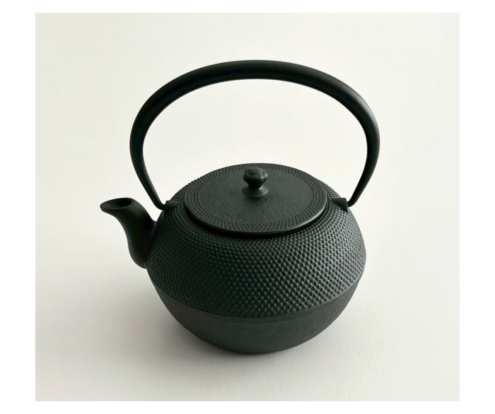 南部鉄器の老舗、及源鋳造(OIGEN)の鉄瓶、まろみアラレ。