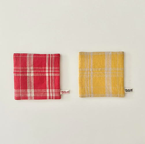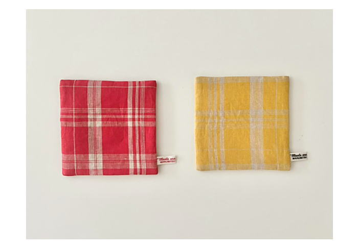 色糸と生成糸で織り合わせたオリジナルチェック柄のリネン。イタリア語で「小高い丘」