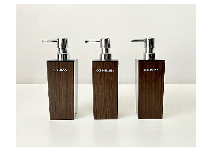 WOODY(ウッディ) ディスペンサー詰め替えボトル3本セット (各500ml) 角リムーブ型 黒ベース ウォルナット